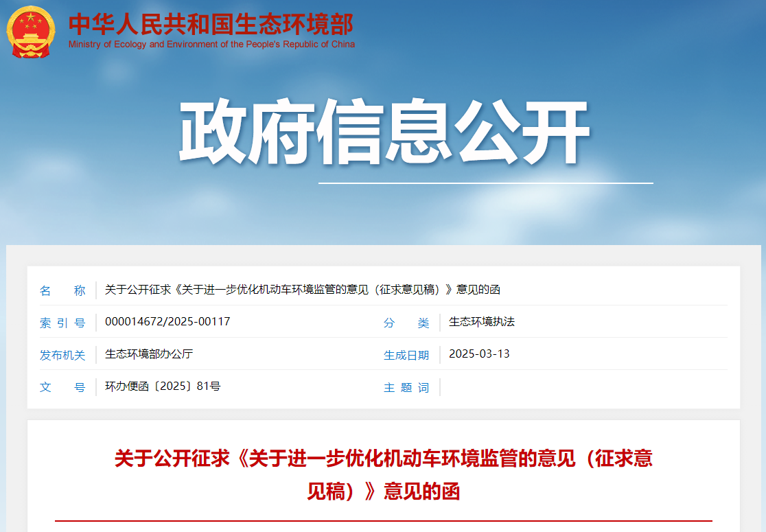 生態(tài)環(huán)境部關(guān)于進一步優(yōu)化機動車環(huán)境監(jiān)管的意見(征求意見稿)