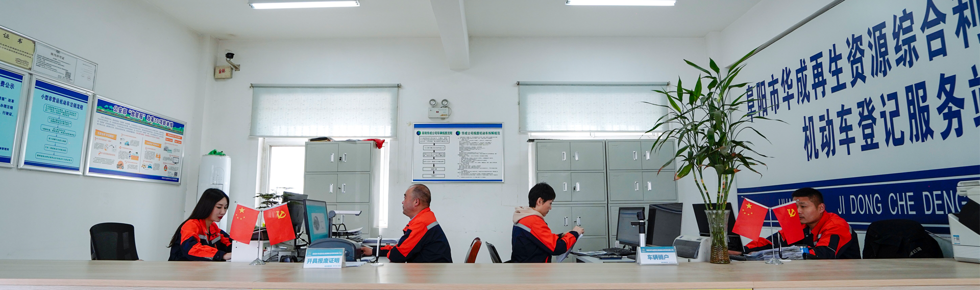 阜陽(yáng)市華成再生資源綜合利用有限公司成立于2012年,是玉成(北京)有限公司控股企業(yè)。廠址位于阜陽(yáng)市經(jīng)濟(jì)開(kāi)發(fā)區(qū)汽貿(mào)物流園,占地72畝,年回收拆解能力30000輛/臺(tái)(報(bào)廢機(jī)動(dòng)車(chē)20000輛、報(bào)廢農(nóng)機(jī)10000臺(tái))。