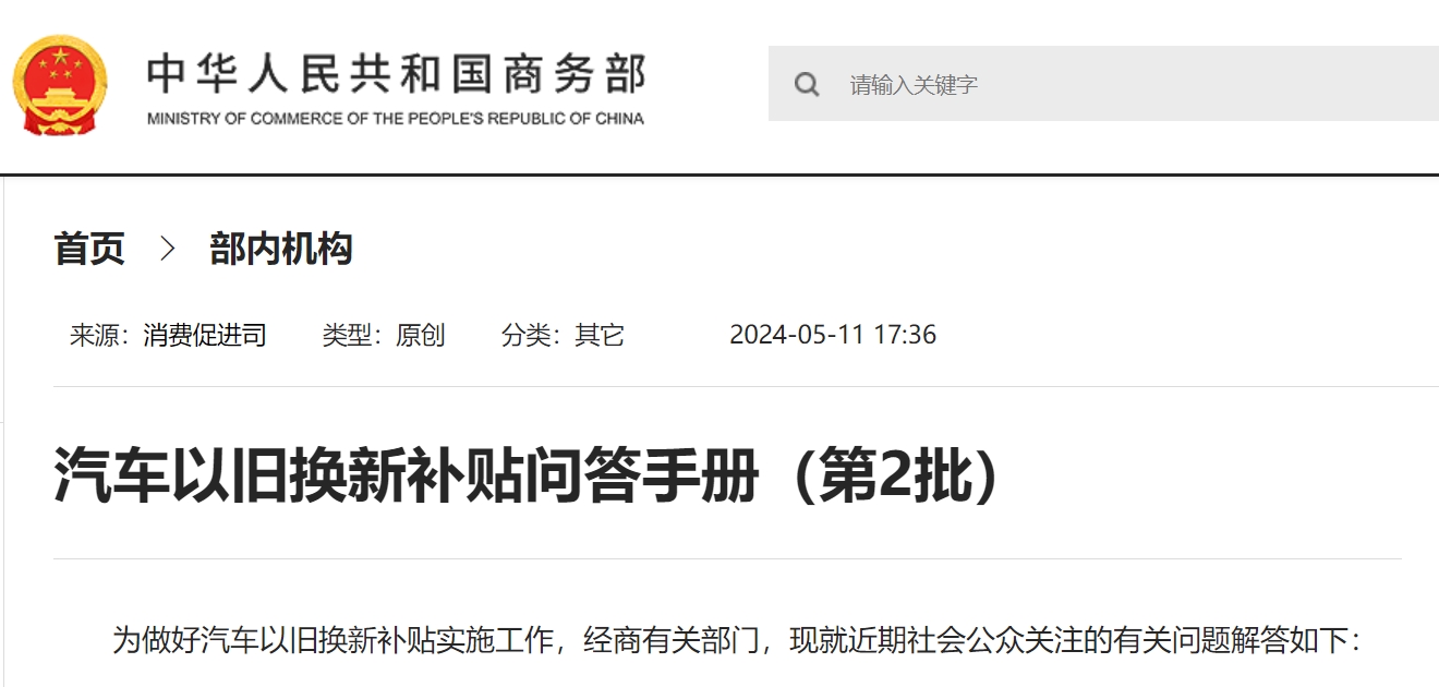 商務(wù)部:汽車以舊換新補貼問答手冊(第2批)