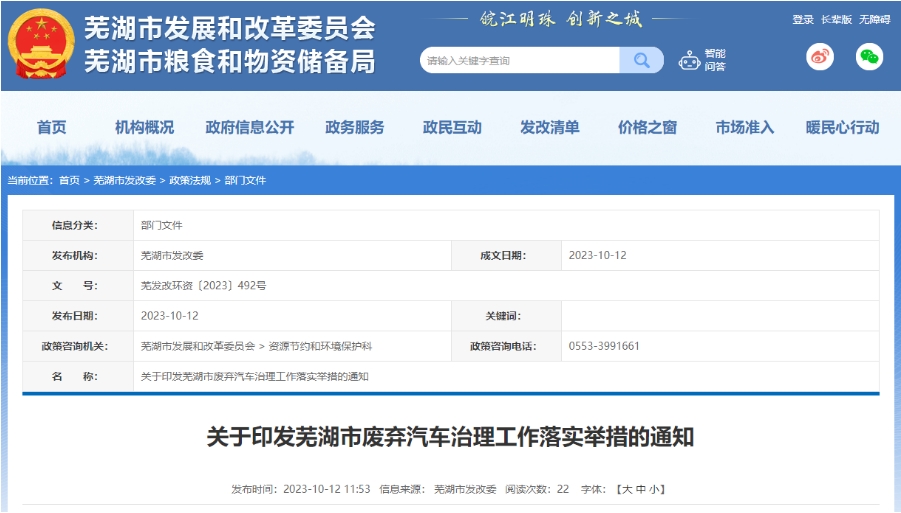 安徽省蕪湖市:建立健全廢棄汽車長(zhǎng)效治理機(jī)制健全報(bào)廢汽車回收利用體系