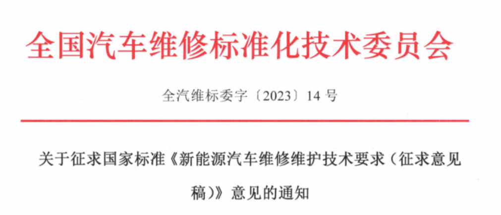 全國汽車維修標準化技術(shù)委員會關(guān)于征求國家標準《新能源汽車維修維護技術(shù)要求(征求意見稿)》意見的通知