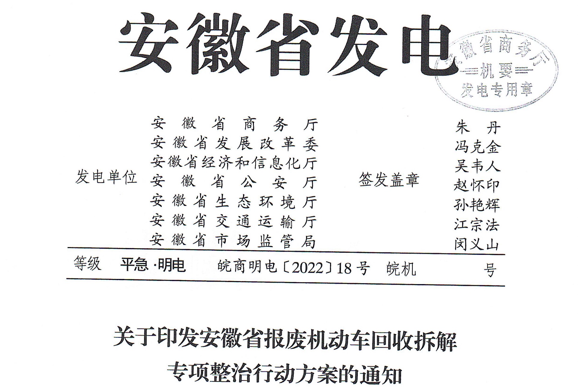 各市商務(wù)局,廣德市、宿松縣商務(wù)局:4月16日,生態(tài)環(huán)境部發(fā)布典型案例“安徽省滁州市鳳陽(yáng)縣機(jī)動(dòng)車拆解行業(yè)監(jiān)管缺失環(huán)境污染嚴(yán)重”,充分暴露出我省一些地方和部門報(bào)廢機(jī)...