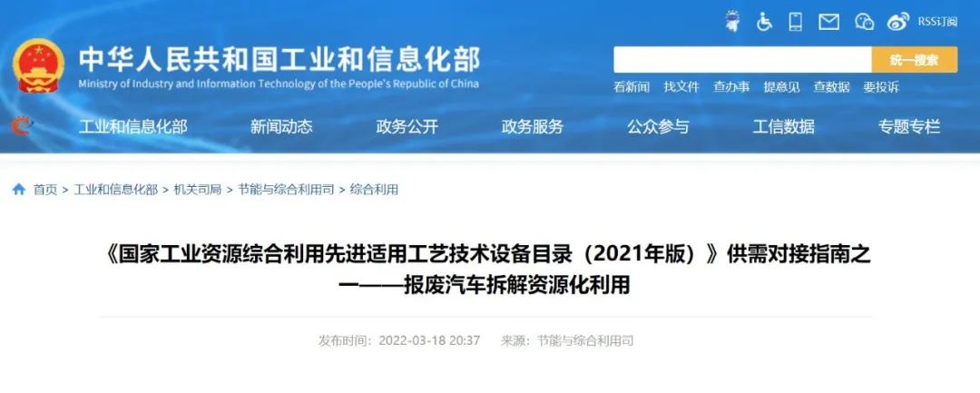 《國(guó)家工業(yè)資源綜合利用先進(jìn)適用工藝技術(shù)設(shè)備目錄(2021年版)》供需對(duì)接指南之一——報(bào)廢汽車拆解資源化利用.pdf