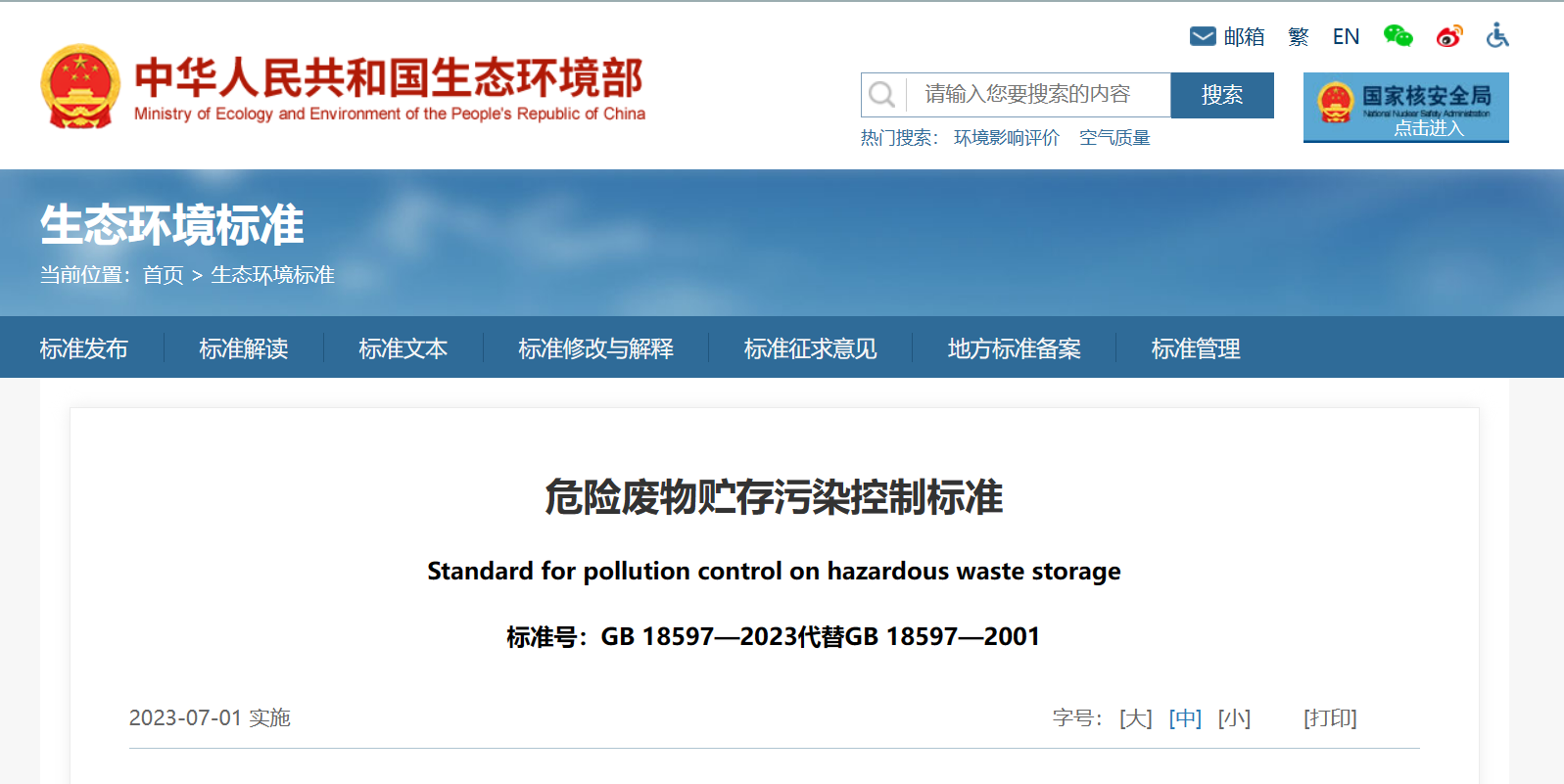 生態(tài)環(huán)境部:危險(xiǎn)廢物貯存污染控制標(biāo)準(zhǔn)更新