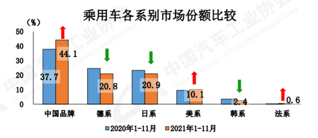 11月,汽車芯片供應(yīng)依然緊張,疊加國內(nèi)散點(diǎn)疫情反復(fù)的影響,乘用車市場繼續(xù)低位運(yùn)行,態(tài)勢與10月基本相當(dāng)。數(shù)據(jù)顯示,11月,乘用車產(chǎn)銷分別完成223.1萬輛和219.2萬輛,環(huán)比分別增長12.2%和9.2%,同比分別下降4.3%和4.7%,降幅比10月分別收窄0.4個百分點(diǎn)和0.3個百分點(diǎn)。與2019年相比,乘用車產(chǎn)銷同比增長3%和6.5%,增幅比10月擴(kuò)大0.6和3.1個百分點(diǎn)。1-11月,乘用車產(chǎn)銷分別完成1887.9萬輛和1906.0萬輛,同比分別增長6.9%和7.1%,增幅比1-10月均回落1.7個百分點(diǎn)。與2019年同期相比,產(chǎn)銷同比分別下降1.7%和1%,降幅比1-10月分別收窄0.6和0.9個百分點(diǎn)。