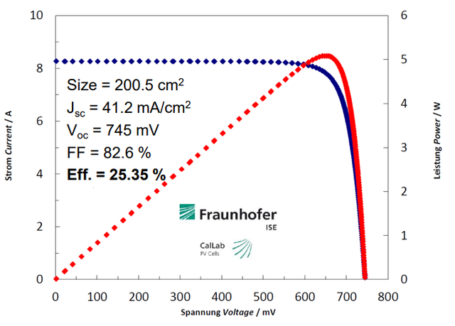 瑞士電子與微技術(shù)中心CSEM,聯(lián)合設(shè)備廠商Meyer Burger和EPFL,提出了低成本的Tunnel-HBC電池工藝,Voc達(dá)到了745mV,電池轉(zhuǎn)換效率高達(dá)25.35%。見下圖: