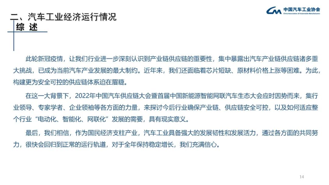 我們相信,作為國(guó)民經(jīng)濟(jì)支柱產(chǎn)業(yè),汽車工業(yè)具備強(qiáng)大的發(fā)展韌性和發(fā)展活力,通過(guò)各方面的共同努力,很快會(huì)回歸到正常的運(yùn)行軌道,對(duì)于全年保持穩(wěn)定增長(zhǎng),我們充滿信心。